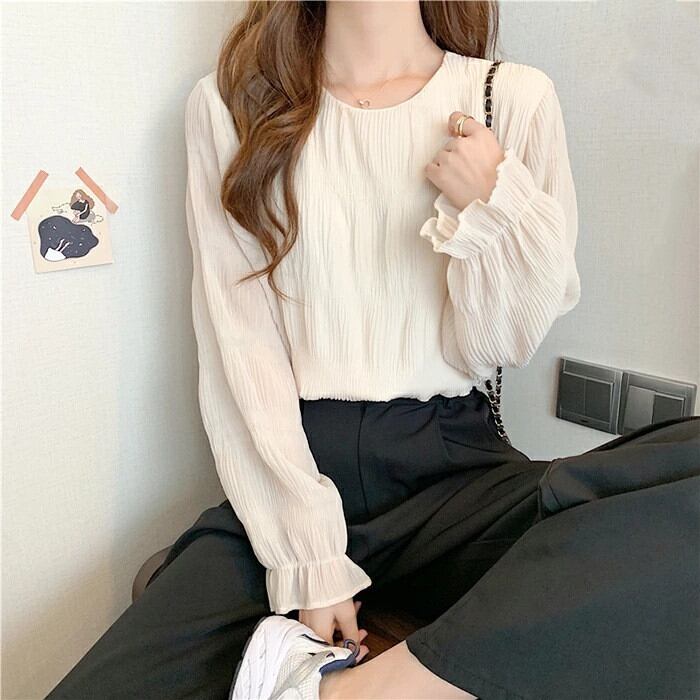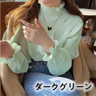 レディースブラウス 大人可愛い シャーリング シフォン ハイネック ブラウス 裏地付き 2024秋冬新作