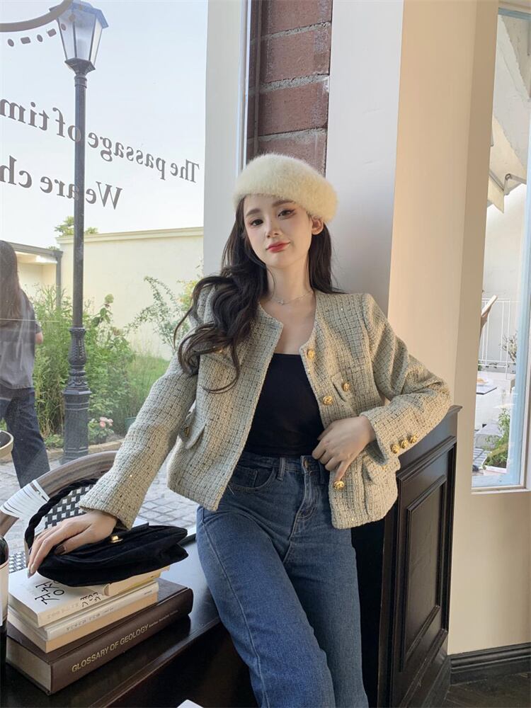 秋が楽しみ コート カーディガン 秋冬物 早秋 ギャザリング ショートコート 丸首の上着 新作 レディース