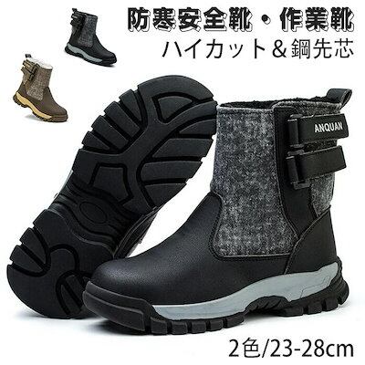 防寒安全靴 メンズ レディース 長靴裏起毛ハイカット 作業靴マジックテープ 安全シューズ 鋼先芯防水 工事現場スマッシュ防止 冬雪国対応 黒