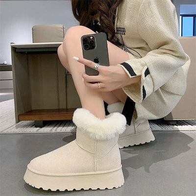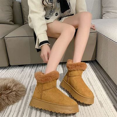 裏起毛ブーツ レディース ムートンブーツ フアー ショートブーツ 防寒 大きいサイズ 痛くない 走れる もこもこ 歩きやすい 滑り止め 裏ボア 暖かい 裏起毛 防寒 防水 スノーブーツ ボアブーツ ロ