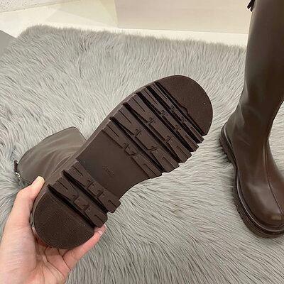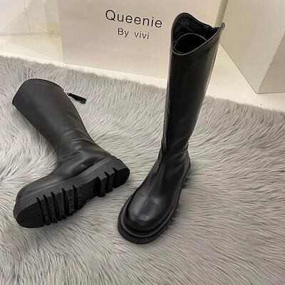 ロングブーツ レディース 厚底 厚底ブーツ ブーツ ロング 太ヒール スクエアトゥ 疲れない やわらか 柔らかい 歩きやすい 軽量 大きいサイズ 防寒 滑りにくい ボリュームソール トラックソール 美