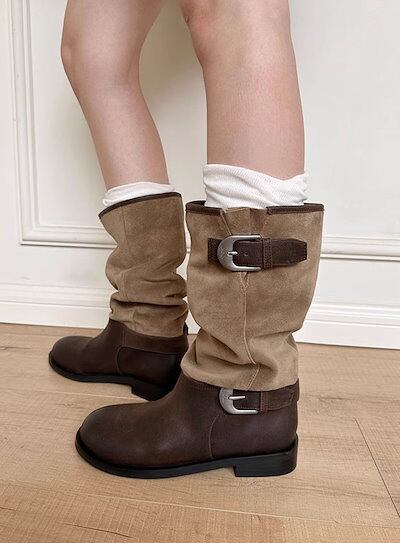 ブーツ レディース エンジニアブーツ ショートブーツ ぺたんこ ワークブーツ ロングブーツ ロング丈 ベルト ミドルブーツ ハーフ丈 くしゅくしゅ ルーズ 歩きやすい 秋冬 3cm ローヒール 甲高