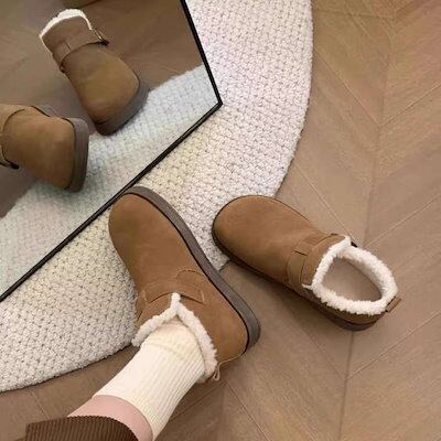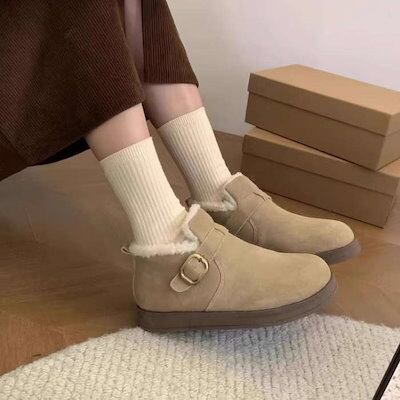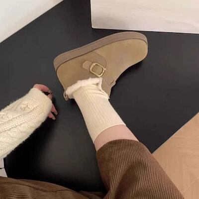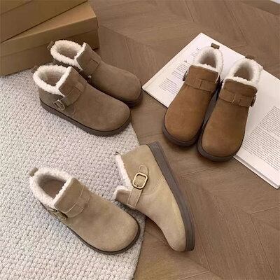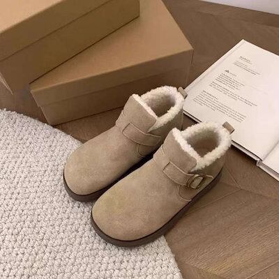 ショートブーツ レディース シューズ スリッポン ムートンブーツ スエード ローヒール 裏起毛 あったか スノーブーツ ぺたんこ ルームシューズ ボア付き 滑り止め あったか 歩きやすい 室内 室外