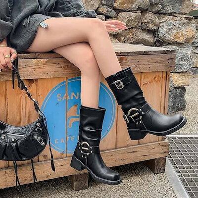 靴 ワイド 歩きやすい エンジニアブーツ 大きいサイズ ミドルブーツ 厚底 おしゃれ レディース ブーツ ショートブーツ ゆったり