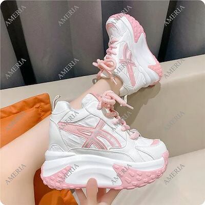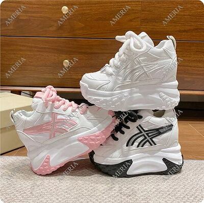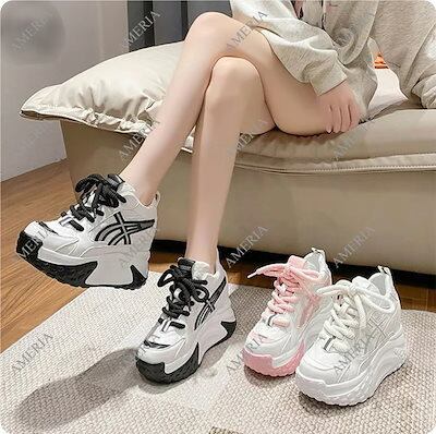 厚底スニーカー ダッドスニーカー 22.0〜24.5cm インヒール ボリュームソール レースアップ 10cm 厚底 ダッドシューズ カジュアル 韓国ファッション レディース