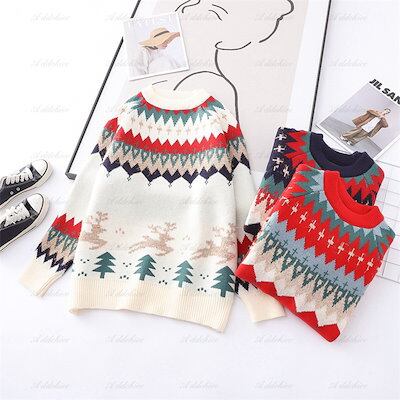 セーター クリスマス ニットセーター 男女兼用 レディース メンズ レジャー セーター ペアルック カップル サンタクロース 親友 ニット クリスマス風 秋冬 ニット 厚手 可愛い 暖かい 20代 3