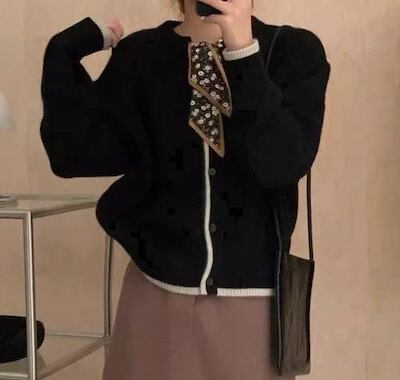 レディース トップス ニット カーディガン 長袖 ボウタイ リボン ボタン レトロ クラシカル 学生風