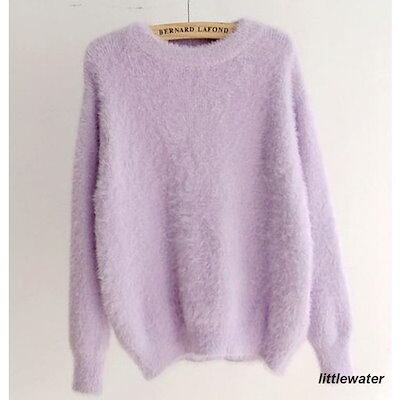 新品 ニット セーター プルオーバー ラウンドネック クルーネック 長袖 シャギーニット レディース トップス シンプル 無地 ゆったり 体型カバー