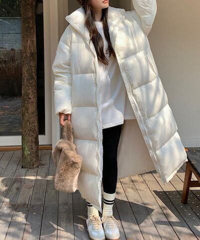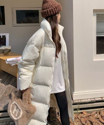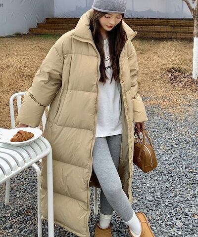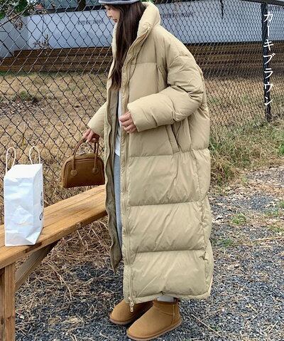 スタンドカラー ロングダウン ロング コート 中綿 シンプル 無地 長袖 あったか カジュアル きれいめ 秋冬 おすすめ レディース オシャレ トレンド 人気 プチプラ 韓国ファッショ