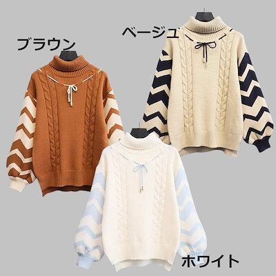 3色展開 厚く暖かいタートルネックセーター レディース トップス ニット セーター プルオーバー アウター 長袖 ランタンスリーブ ラウンドネック タートルネック ワイド ストレート フェミニン