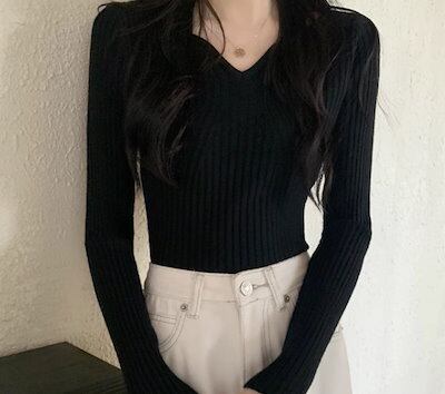 レディース トップス ニット セーター プルオーバー ショート クロップド丈 長袖 Vネック タイト スリム 細身 スマート 大人可愛い きれいめ シンプル カジュアル 上品 おしゃれ かっこいい