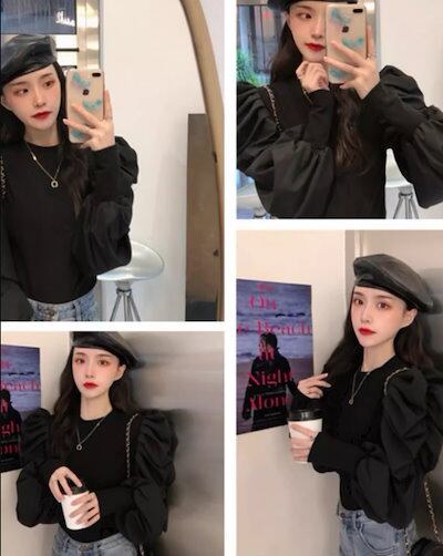 レディース トップス シャツ カットソー ニット セーター プルオーバー ショート 長袖 ボリューム袖 パフスリーブ ハイネック スリム 細身 フェミニン かわいい 大人可愛い カジュアル 上品