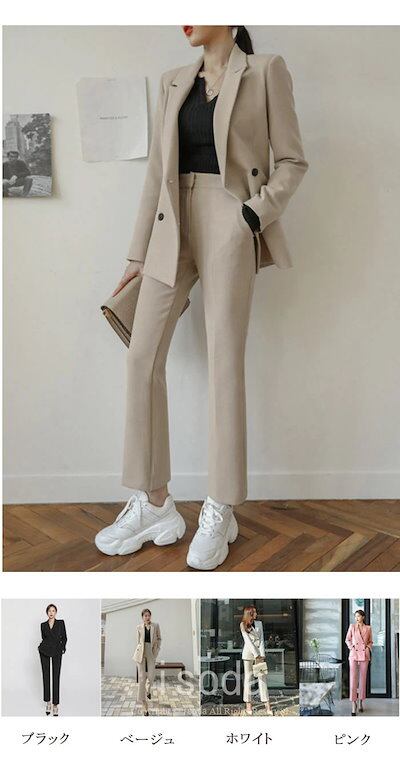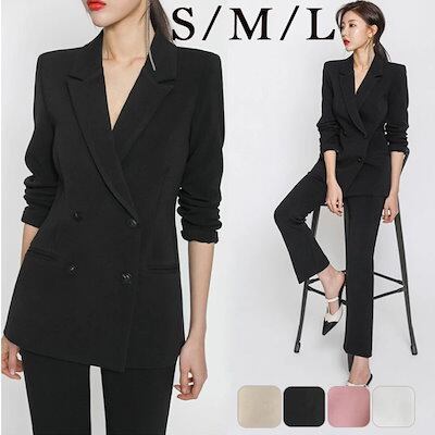 スーツセット レディース パンツスーツ 無地 2点セット 長袖 ビジネス フォーマル 通勤 就活 事務員 事務服 きれいめ おしゃれ 韓国風 ストレッチ 洗える OL ジャケット パンツ フレア オシ
