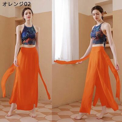 古典ダンス衣装 新作 上下セット 5色 レディース キャミソール へそ出し パンツ ワインドパンツ フレア裾 古典ダンスパンツ リボン ヨガ服 ダンスウェア 練習着 ヨガウェア レッスン着 社交ダンス