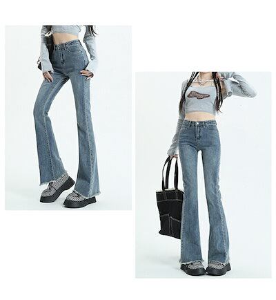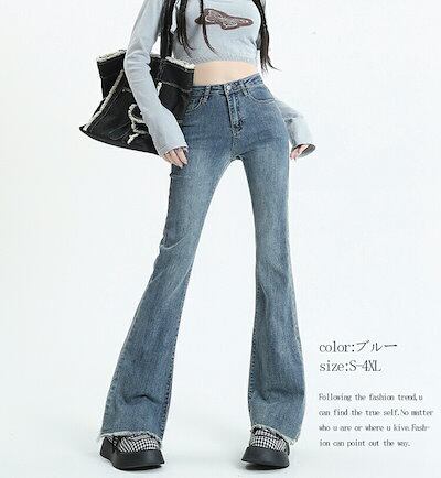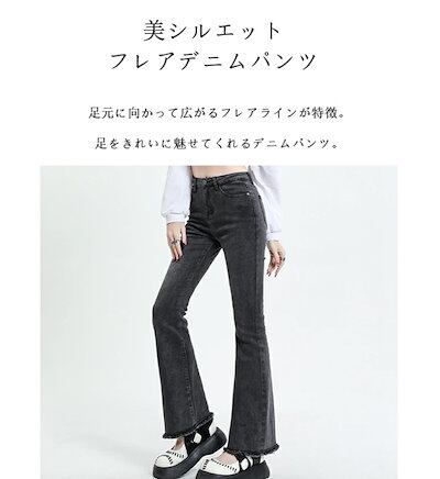 フレア デニムパンツ レディース 大きいサイズ 低身長 デニム パンツ 落ち感 セミフレア 裾フレンジ スキニーパンツ ストレッチ 伸縮性 ボトムス ポケット ロングパンツ 長ズボン ジーンズ フ