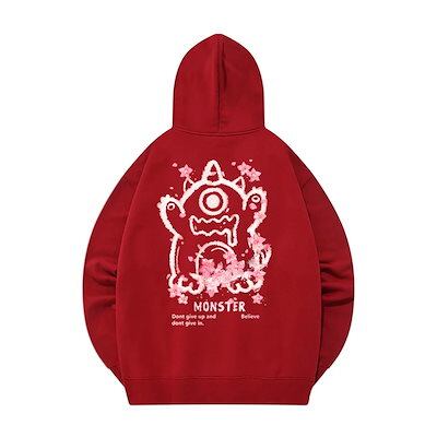 パーカー レディースレディーススウェットシャツ2024新しいホットスタイルバーガンディ秋冬スタイルフード付きリトルモンスタールーズトップジャケット