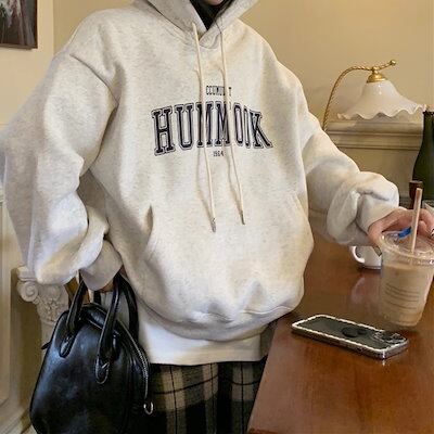 トップス レディース パーカー プルオーバー ロゴパーカー S M L XL 韓国 フード付き カジュアル フーディー ロゴ スタイルアップ フード付き レトロ ポケット ゆったり オーバーサイズ