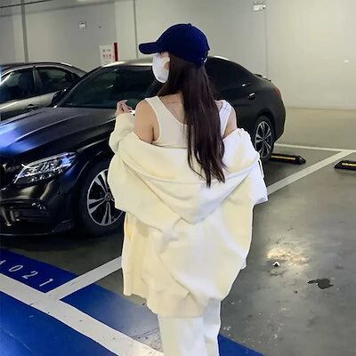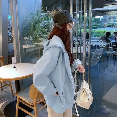 パーカー レディース トップス フード付き 長袖 ジッパー 前開き 無地 ルーズ 大人可愛い きれいめ シンプル 上品 お洒落 かっこいい レトロ こなれ感 ラフ 白 ゆったり オルチャン 20代
