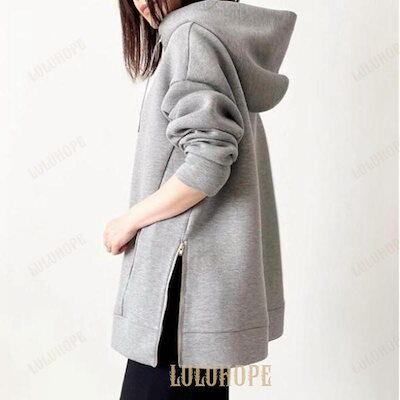 パーカー レディース フード付き 長袖 トップス 無地 おしゃれ 通勤 オーバーサイズ 体型カバー フード 大きめ