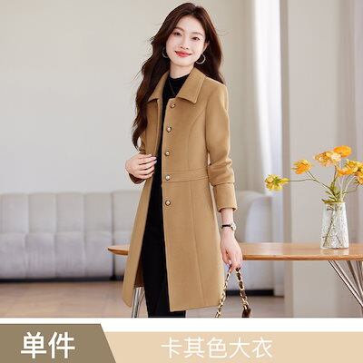 トレンチコートレディース アウター高級ウールコート ミドル丈 スリムフィット カジュアル ウインドブレーカー レディース 秋冬 レッド 高級コート