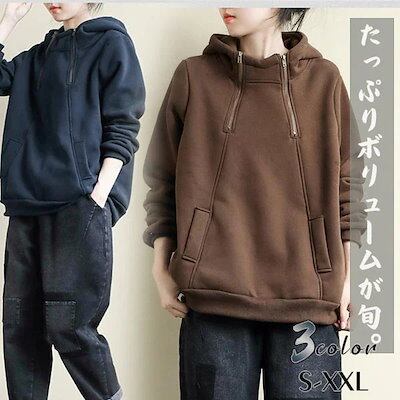パーカー スウェット レディース プルオーバー 裏ボア 長袖 ファスナー 大きいサイズ スウェット フード付き トップス 厚手 体型カバー