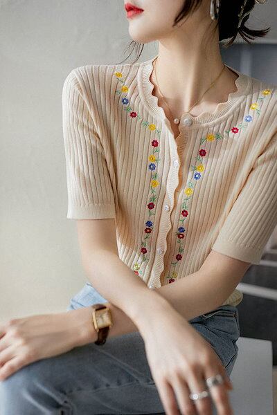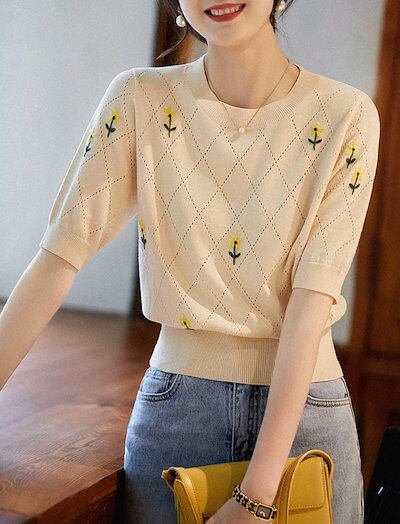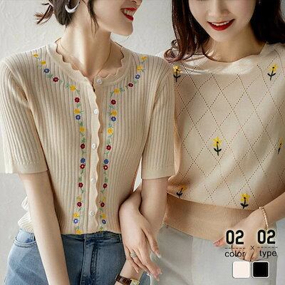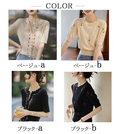 サマーニット レディース 春 夏 トップス カットソー 半袖 カーディガン 秋 ベージュ ブラック 大きいサイズ 大人可愛い オシャレ 20代 30代 40代 50代 60代 羽織り 通勤 オフィス
