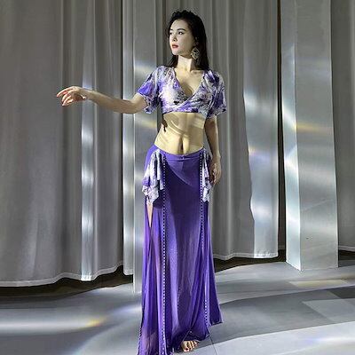 キラキラ 舞台衣装 ハロウィン衣装 セット ラメベリーダンス衣装 ステージ衣装 ラメ入り レディース 大人 コスチューム 練習着 発表会 スカート 衣装 セットアップ 余興 ロング丈 半袖トップス ダ