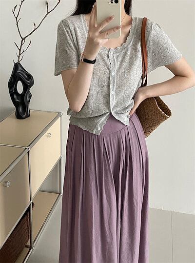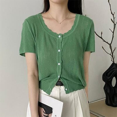 ニット レディース トップス 夏 レディースニット 薄手 サマーニット 半袖 クルーネック 可愛い 透かし編み ゆったり 春 夏 ニット カーディガン 前開き おしゃれ ニットトップス 着回し 風合い