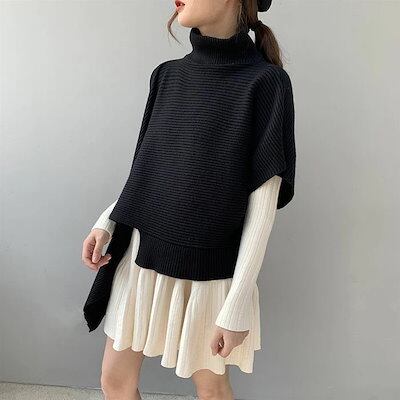 アシメニットベスト ベスト レディース ニット トップス ノースリーブ ハイネック アシンメトリー アシメ フレア セーター 重ね着 レイヤード モード とらみ 半袖 デザイン カジュアル おしゃれ