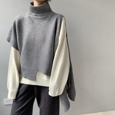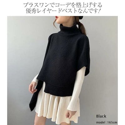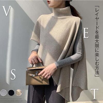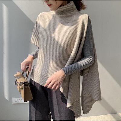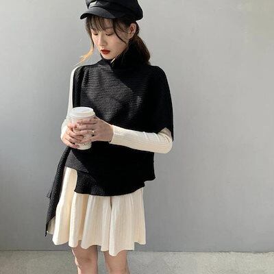 ニットベスト レディース ベスト 半袖 アシンメトリー 変形 アシメ ニット セーター タートルネック チョッキ 秋冬 ケープ プルオーバー 大きいサイズ