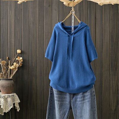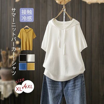パーカー Tシャツ レディース ブラウス 春 夏 接触冷感Tシャツ フード付き ニットパーカー 半袖 シャツブラウス 薄手 トップス 着心地 インナー 大人 ゆったり 体型カバー 30代 40代 50