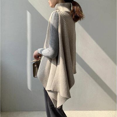 大ヒット ニットベスト レディース ベスト 半袖 アシンメトリー 変形 アシメ ニット セーター タートルネック チョッキ 秋冬 ケープ プルオーバー 大きいサイズ