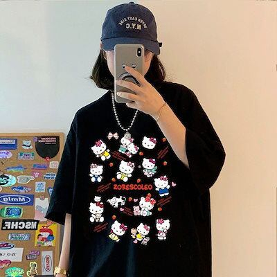 キティちゃん 綿 tシャツ 半袖 S-3XL 4Color 男女兼用 レディース キャラクター 夏服 韓国ファッション大きいサイズtシャツマイメロディクロミちゃんシナモロールポチャッコ