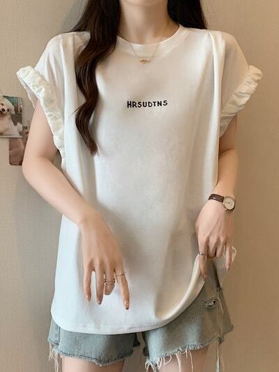 デザイン感韓国版ゆったり半袖Tシャツレディースサマーサイズ太めmm着痩せアルファベットプリント独特のシックなトップス