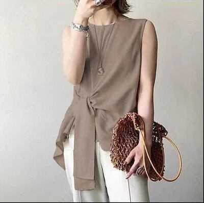 UVカット特集レディース ブラウス長袖ブラウス日焼け防止体型カバーチュニッククルーネックトップス日系ノースリーブ おしゃれ アシンメトリー トップス ノースリーブ Tシャツ 半袖 リネン素材トップスシ