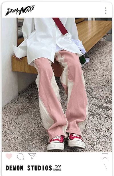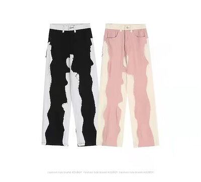 ワイドパンツ レディースパッチワーク生エッジジーンズワイドレッグストレートパンツドレープパンツ薄い女性 スラックス ハイウエスト