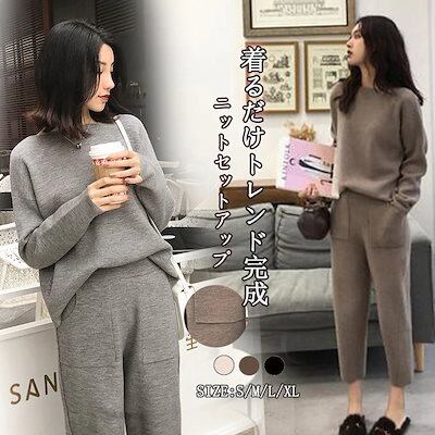 2024 秋 セットアップ おしゃれ カジュアル 気質 百掛け セーター ワイドパンツ レディース カジュアルパンツ 二点セット シンプル 涼しく楽ちん セット 秋服