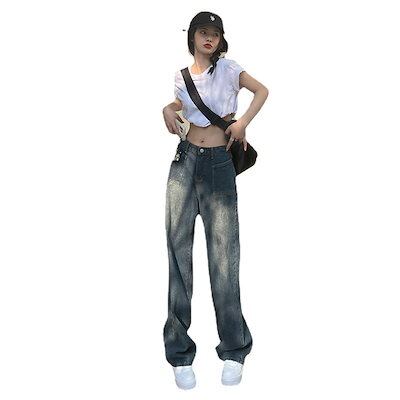2024新型 アメリカ ゆったりワイドパンツ ハイウエストストレートスリム パンツ デニムボトムス ジーンズ ボトムス レディース 美脚 デニムパンツ