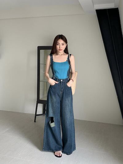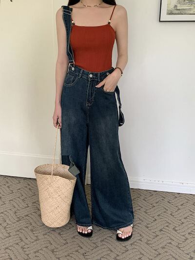コーデ完成!サロペット 不?? 韓国ファッション 体型カバー ゆったり ストレートオールインワン サロペットパンツ ゆったり 無地 カジュアル ストレートワイドパンツ サロペット レディー