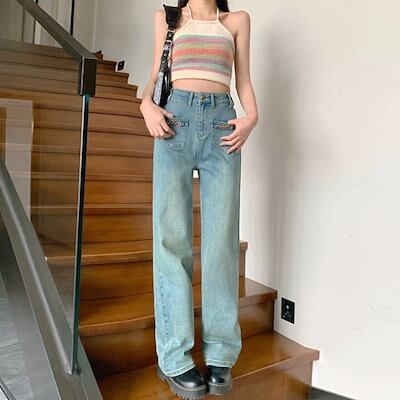 デニムボトムス ジーンズ ワイドパンツ レディースモップパンツ 着痩せ ジーンズ ロングパンツ レディース服 デザイン感 ハイウェストゆったり 長ズボン ロングズボン ワイドパンツ