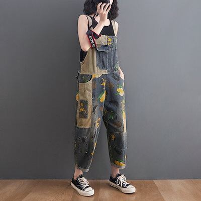 コーデ完成!サロペット デニム ワイドパンツ 韓国ファッション 体型カバー ゆったり ストレート オーバーオール リネンパンツ ゆったり 無地 カジュアル ストレートワイドパンツ