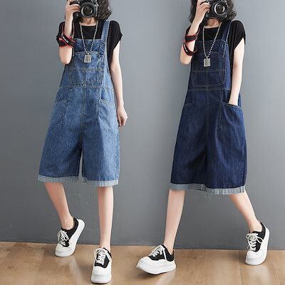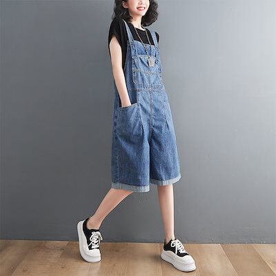 コーデ完成!サロペット カジュアル ジーンズ ワイドパンツ 韓国ファッション 体型カバー ゆったり ストレート オーバーオール リネンパンツ ゆったり 無地 カジュアル ストレートワイドパンツ