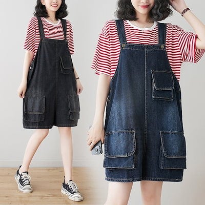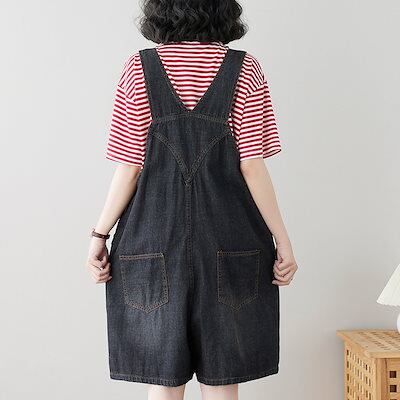 コーデ完成!サロペットジーンズ ワイドパンツデニム 韓国ファッション 体型カバー ゆったり ストレート オーバーオール リネンパンツ ゆったり 無地 カジュアル ストレートワイドパンツ