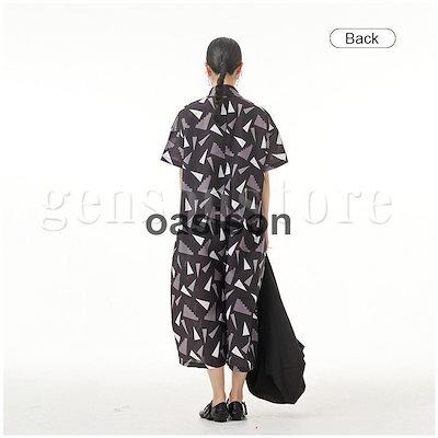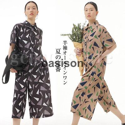 サロペット オールインワン レディース ハーフパンツ ワイドパンツ 半袖 総柄 ロンパース 春夏 大人カジュアル ゆるくスタイリッシュ つなぎ オーバーオール