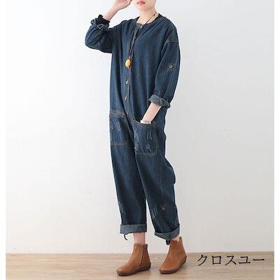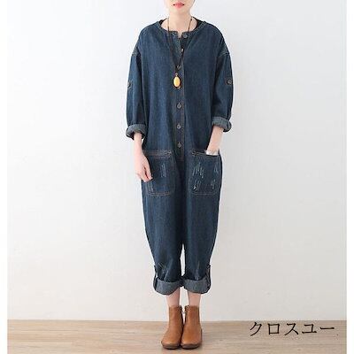 オールイン デニム つなぎ レディース デニムパンツドレス 連体服 オーバーオール 長袖 ロングパンツ ツナギ サル 古着風 マタニティ ゆったり