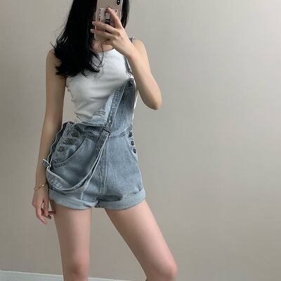 ショートデニムオーバーオール オーバーオール ショート丈 サスペンダー ワイドレッグ ショートパンツ ポケット ルーズ 韓国 レディース かわいい 可愛い 大人可愛い 大人女子 シンプル