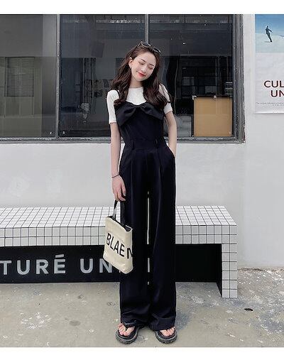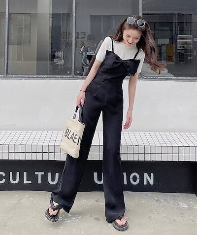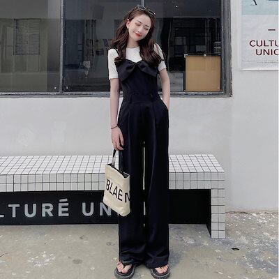 BIGリボン付き ジャンプスーツ サロペット オールインワン オーバーオール レディース ハイウエス