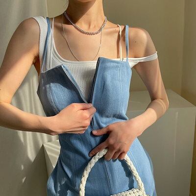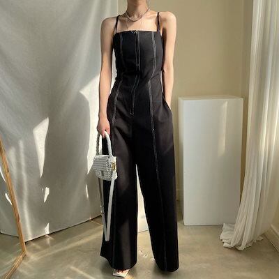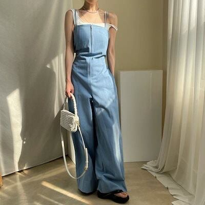フロントジップデニムオーバーオール ジャンプスーツ レディース オーバーオール バックスロス オール