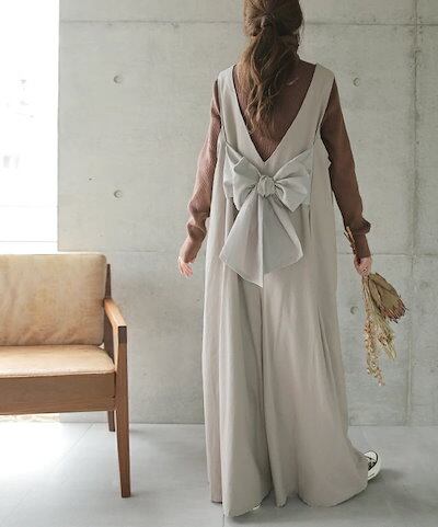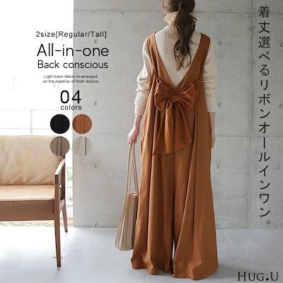 HUG.Uオールインワン レディース サロペット サロペ オーバーオール バックリボン リボン