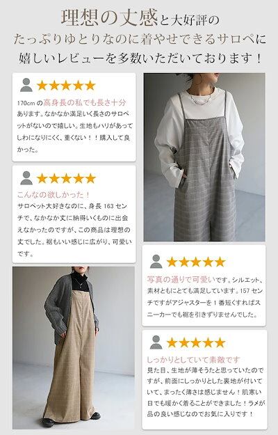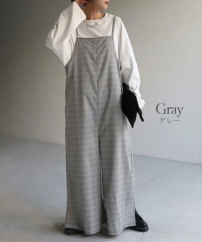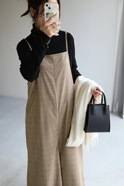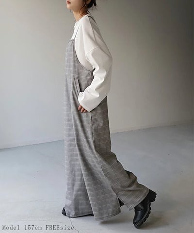 HUG.Uオールインワン レディース サロペット 体型カバー シンプル チェック チェック柄